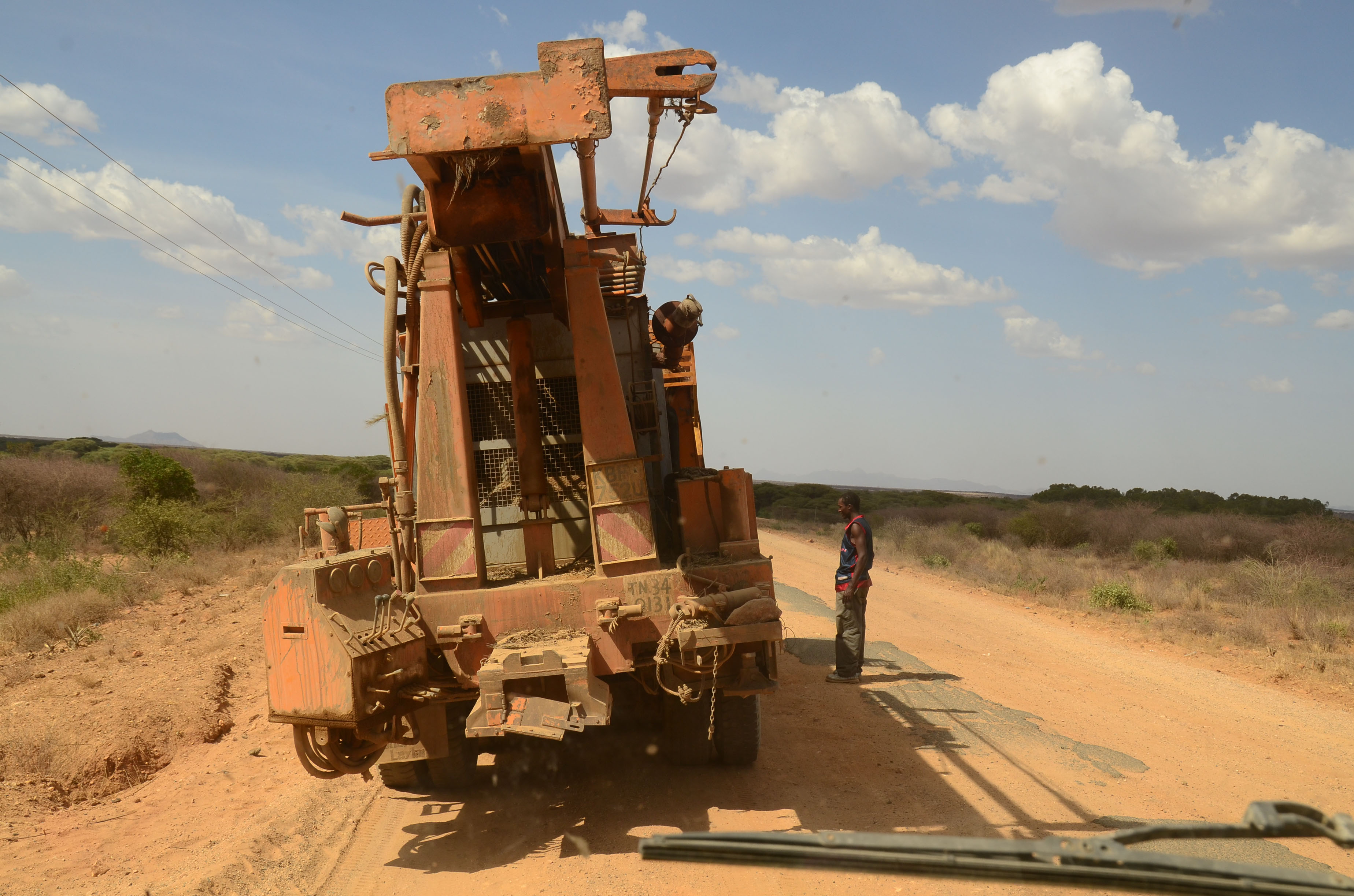 I am here co-ordinating two projects we have funded. I travelled up with one of our partners, Staff of Hope, along with their drilling rig and team of five. The Water Project is funding their work here, at an orphanage called The House of Hope and a nearby community called Kakiriing. The journey took us from Kitale in Rift Valley Province through Pokot and eventually to Lodwar. This is a journey of some 300km. On good roads, with a strong vehicle it could take 3 hours. The journey lasted three and a half days, and included five breakdowns and a near miss with bandit attack.