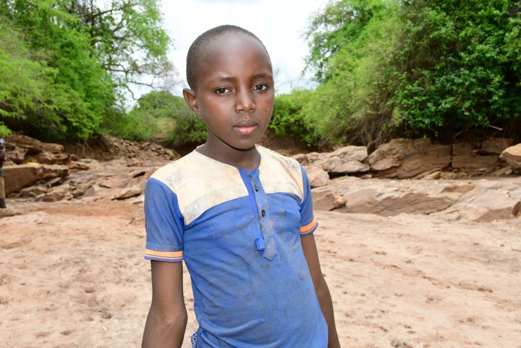 Field Officer Alex Koech, who visited the community this fall, described just how unforgiving the landscape is. “The area’s dryness and dusty nature make it difficult to navigate, especially during drought periods,” he said. “Dust can cause irritation, and the barren land offers little vegetation or shade, making long journeys to fetch water exhausting and dangerous due to heat exposure. The area is also rocky; the path to the scoop hole or the sand dam is therefore treacherous. Walking over uneven ground or sharp rocks increases the risk of injuries such as cuts, sprains, or falls, especially when carrying heavy water containers.”