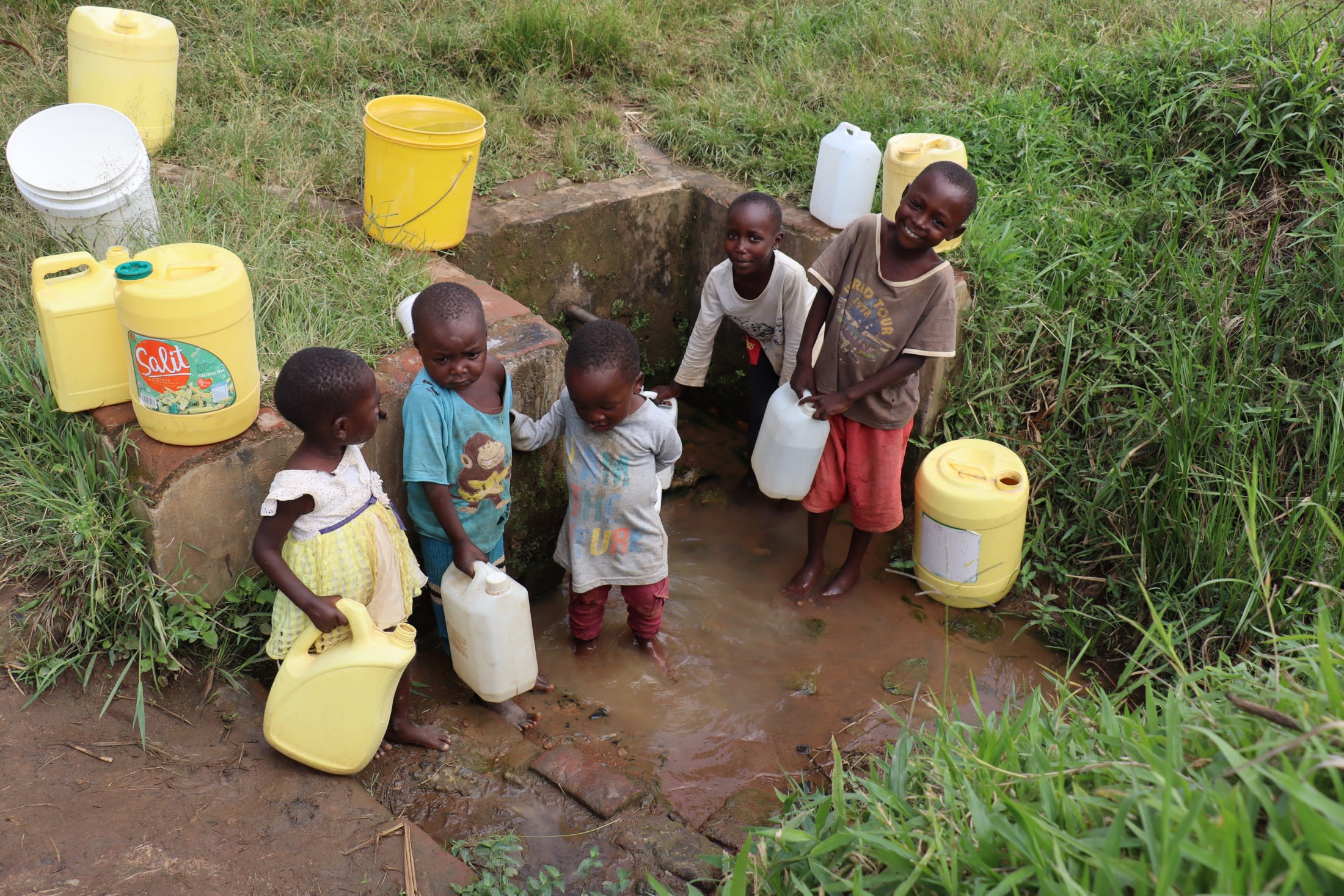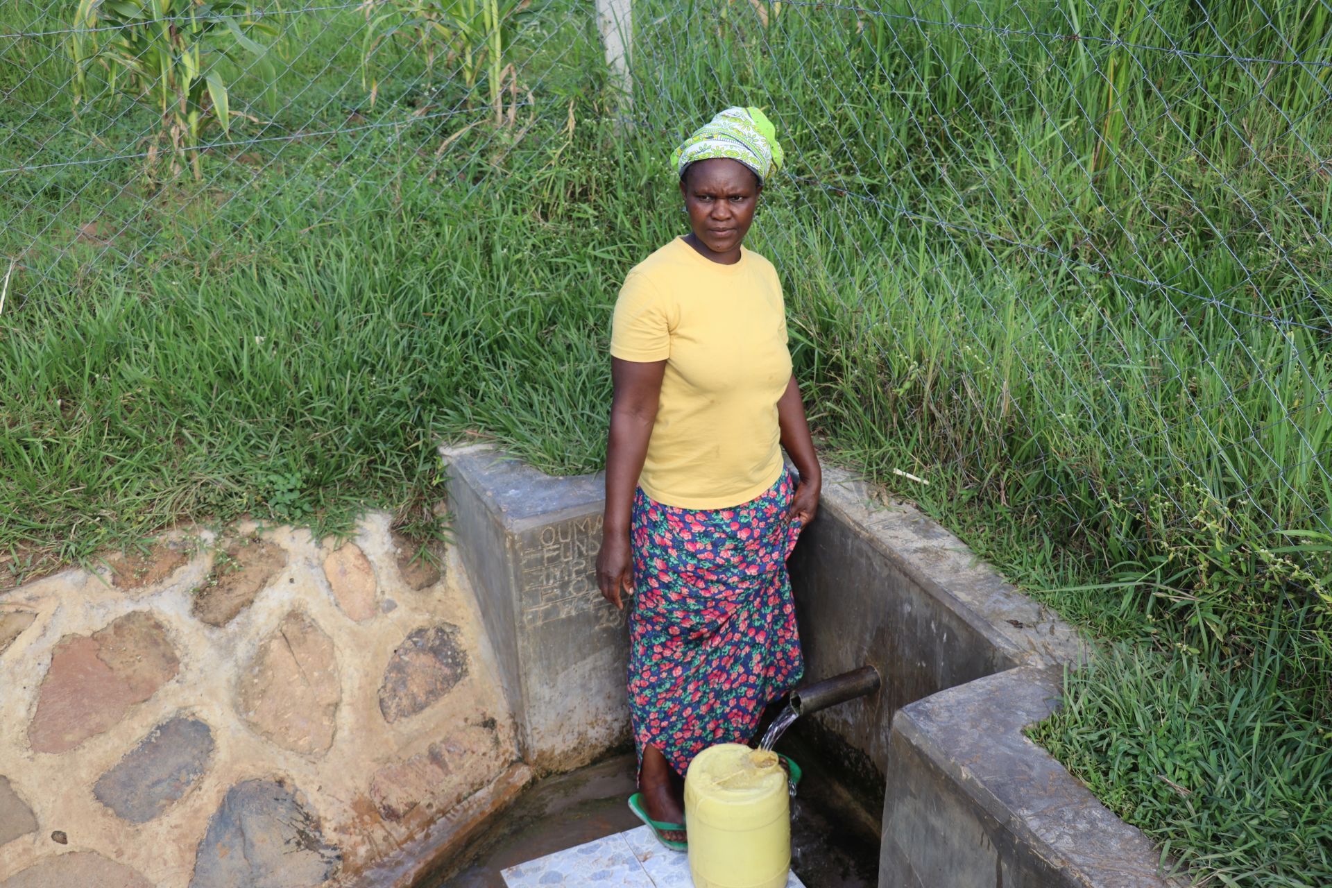 She shared, "I feel good fetching water. It has become so much easier and safer. I no longer have to stand in stagnant water or worry about insects causing skin irritation. The improved drainage keeps the area clean and dry, and the spring gives a better yield, so the queues are much shorter than before. Now I can collect water [in] less than a minute, and also the water is clean, and I feel confident using it for my family as [it has] really improved our daily lives."