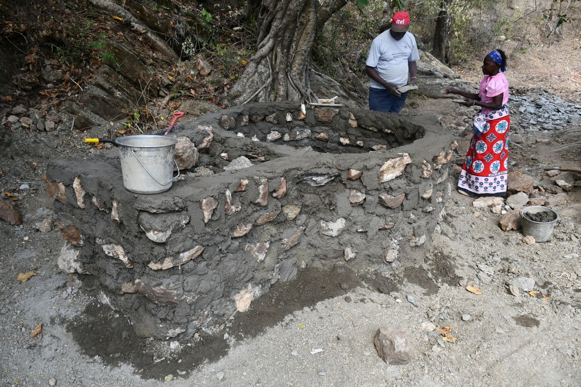 We delivered the experts, materials, and tools, but the community also contributed significantly to an extraordinary amount of work being done. They collected local materials to supplement the project, including sand, stones, and water. Once all the materials were ready, it was time to dig in!