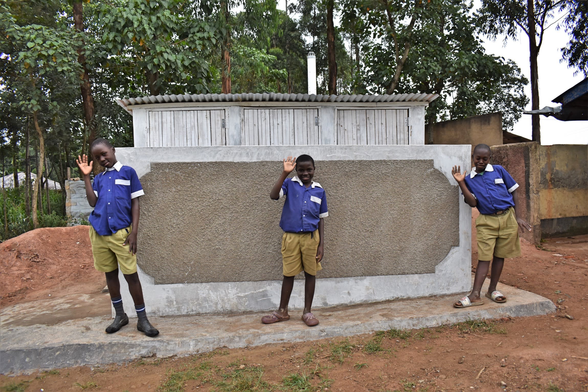 Two triple-door latrine blocks will be constructed with local materials that the school will help gather. Three doors will serve the girls and three doors will serve the boys. All of these new latrines will have cement floors that are designed to be easy to use and to clean. And with a rain tank right on school property, there should be enough water to keep them clean.