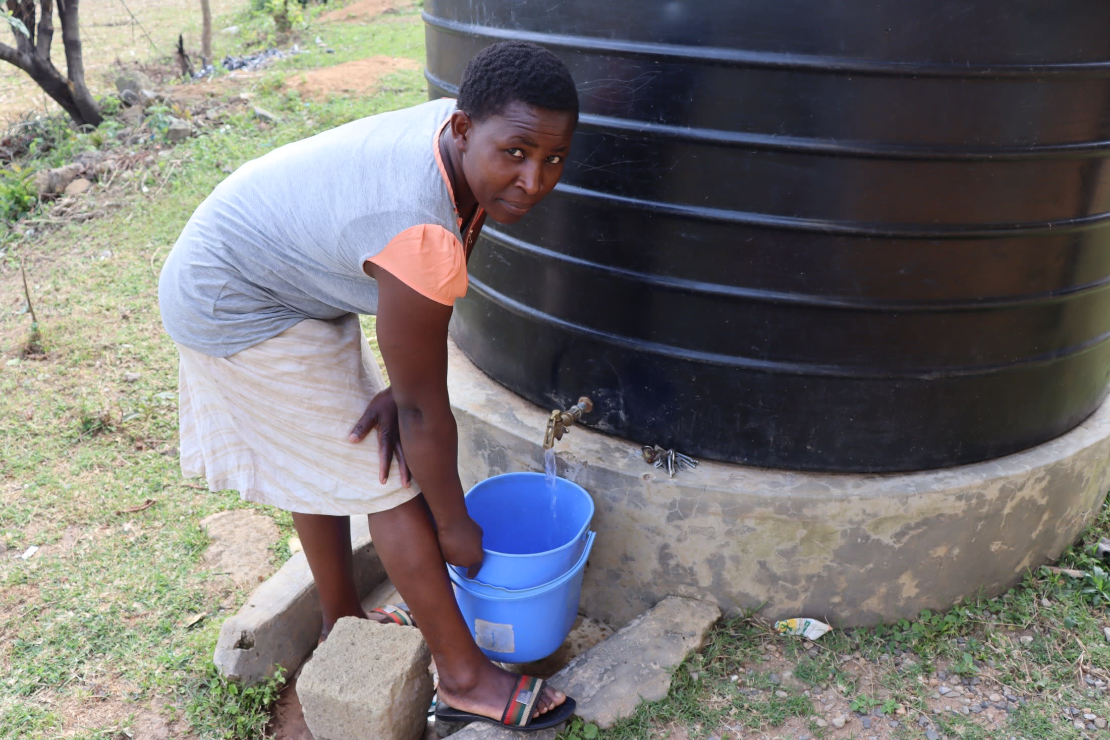 There is a small 5,000-liter rain tank to collect water for the clinic, but it is not large enough to collect the amount of water needed. It empties quickly, especially since the community members who live in the surrounding area also access it.