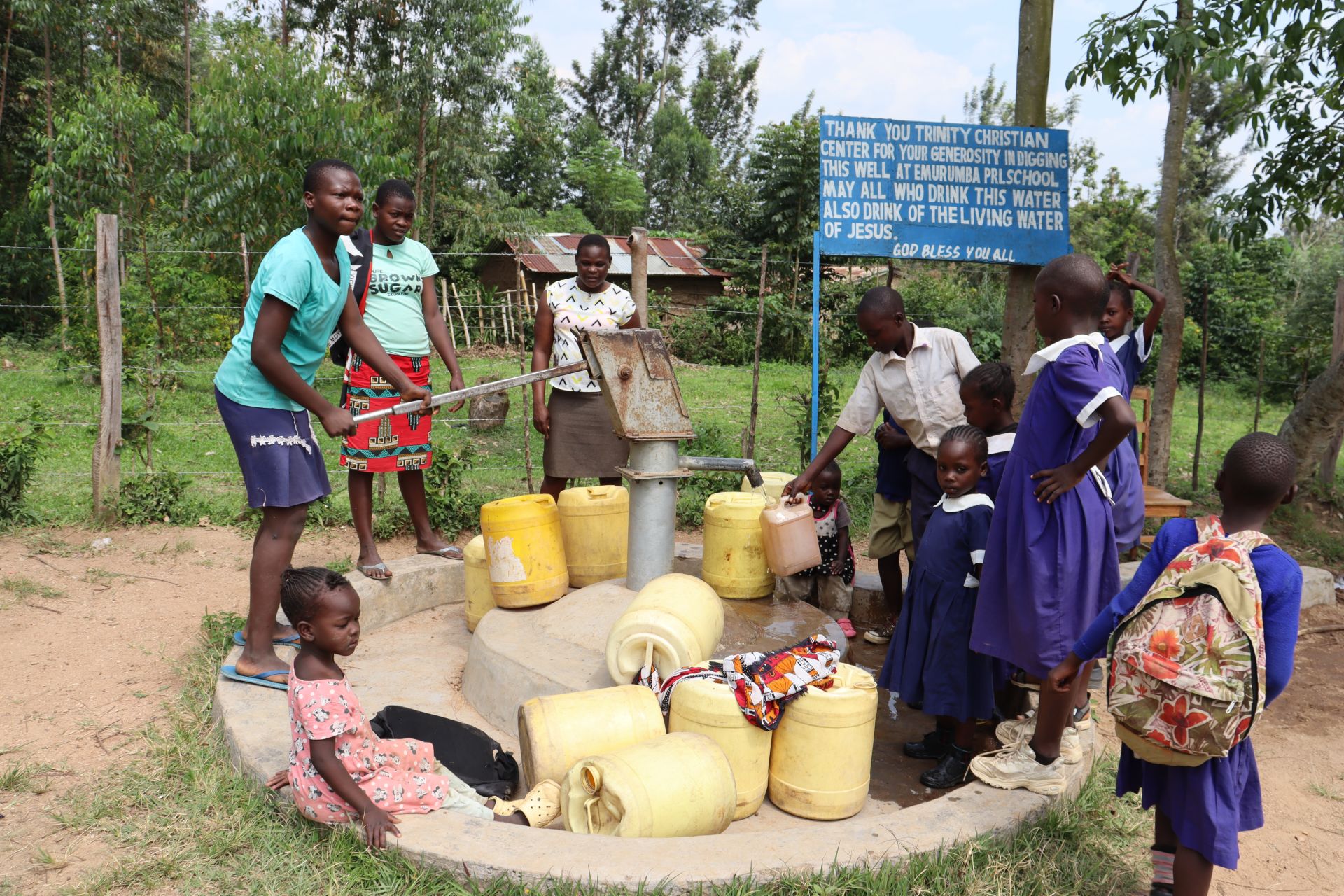 A hand-dug well teases the 419 students and 16 staff members of Emurumba Primary School with the illusion of clean, sufficient water. But in reality, it often runs dry; the pipes that were installed are now rusty and contaminate the water. Although the well's condition is questionable, community members also use it, creating long lines that students have to wait in when they should be in class. When desperate, students go to unknown sources and bring unsafe water to school.