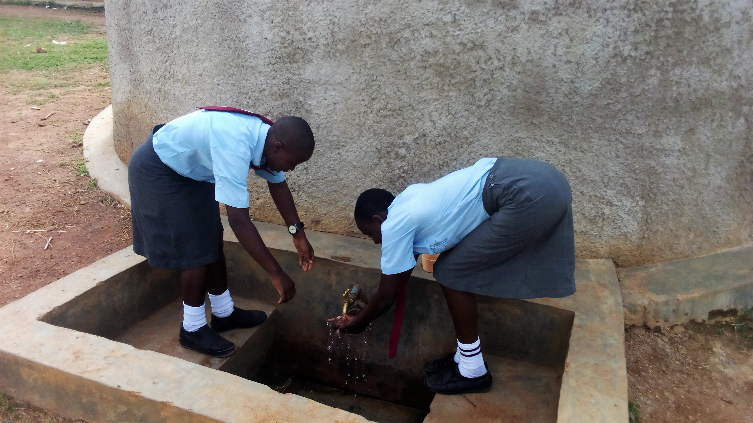 The school has a 1000-liter container kept in the school kitchen. When students or staff fetch water, they can return to school and pour it in the container. Though many choose to boil this water before drinking, there are still cases of waterborne disease reported within the school community.