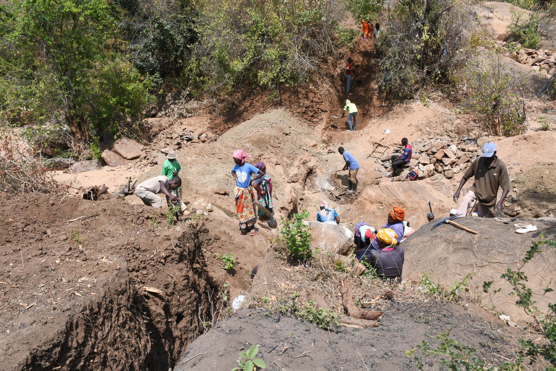 This sand dam will be connected to a protected dug well to make the water more accessible.