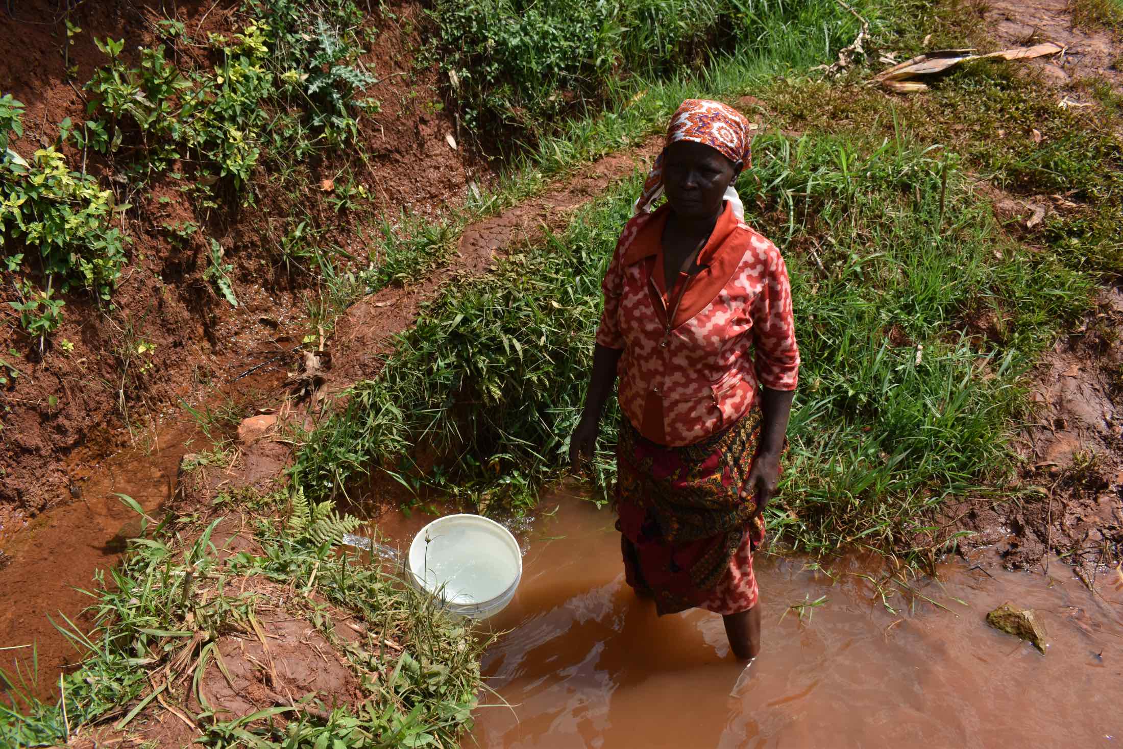 "It's very hard to fetch water from here because of the lack of a friendly access point. There is no staircase to use, and we do slide while carrying water home," said farmer Florence Ominde.