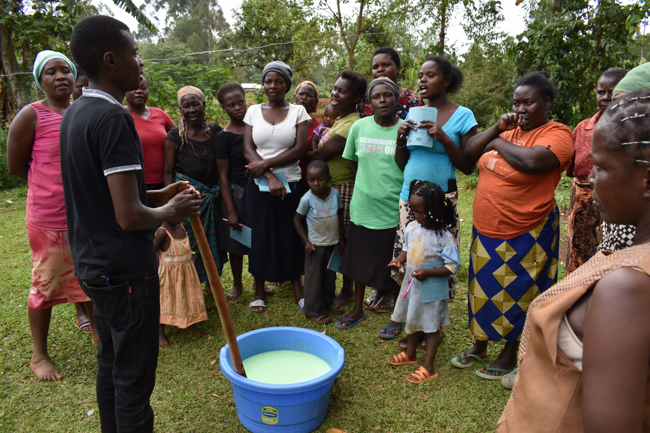 When the day arrived, facilitators Amos, Olivia, and Beverlyne deployed to the site to lead the event. 24 people attended the training, including 22 women and two men. We held the training at a community member's homestead under a shade tree.