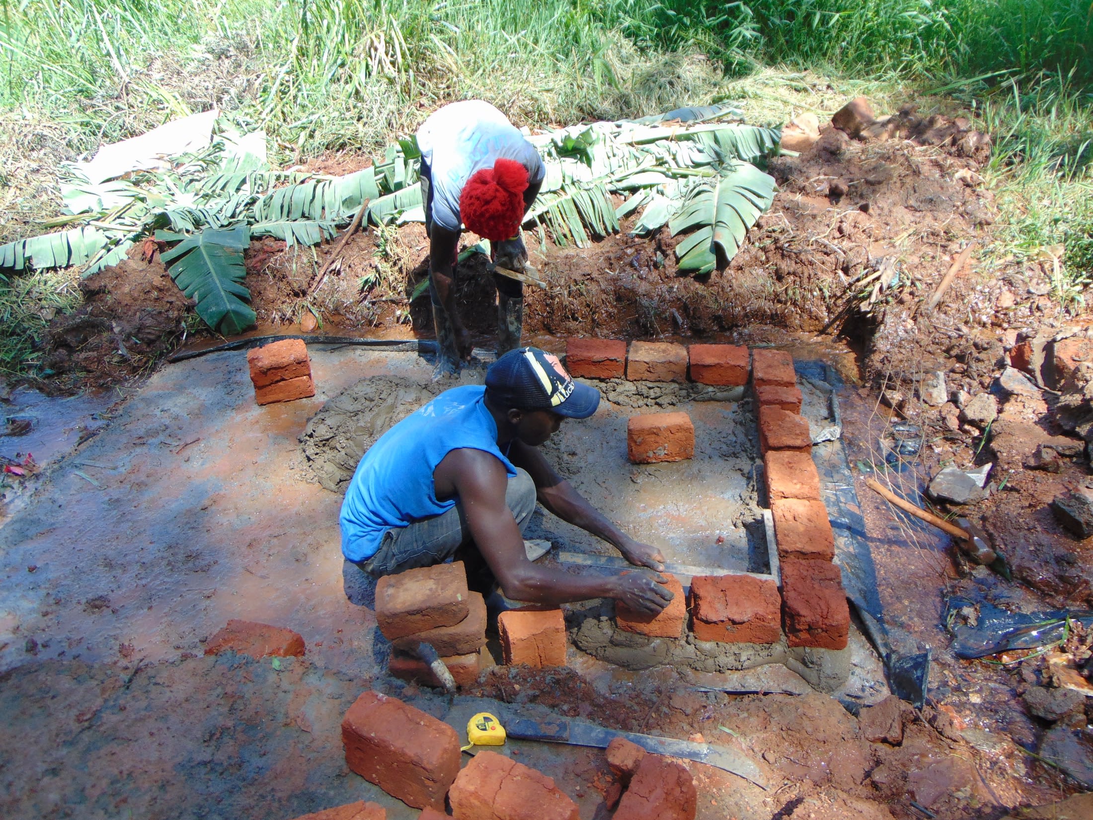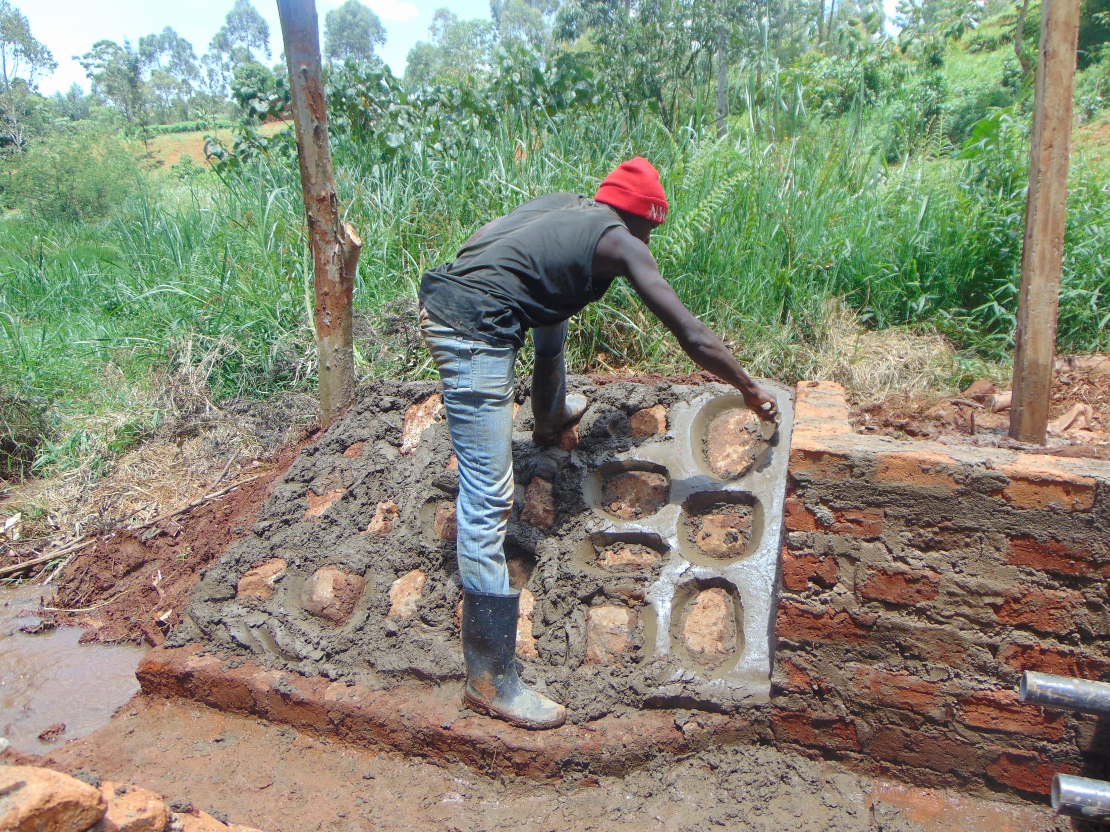 Community members worked together to source and carry all locally available construction materials to the spring. These included bricks, sand, stones, and fencing poles. Some people also chiseled away at large rocks to break them down into gravel. Because people have to carry most items by hand, the material-collection process can take anywhere from a few weeks to months.