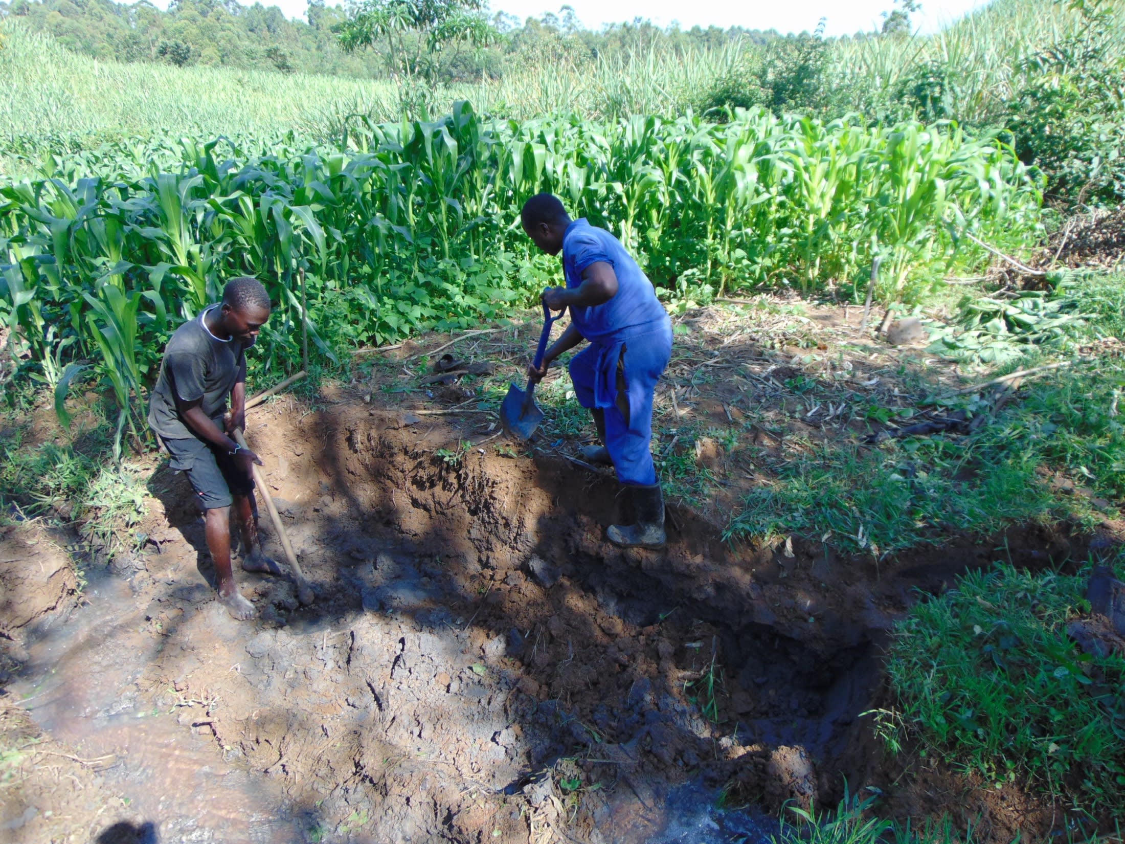 Training will result in the formation of a water user committee, elected by their peers, that will oversee the operations and maintenance of the spring. The committee will enforce proper behavior around the spring and delegate tasks that will help preserve the site, such as building a fence and digging proper drainage channels. The fence will keep out destructive animals and unwanted waste, and the drainage will keep the area’s mosquito population at a minimum.