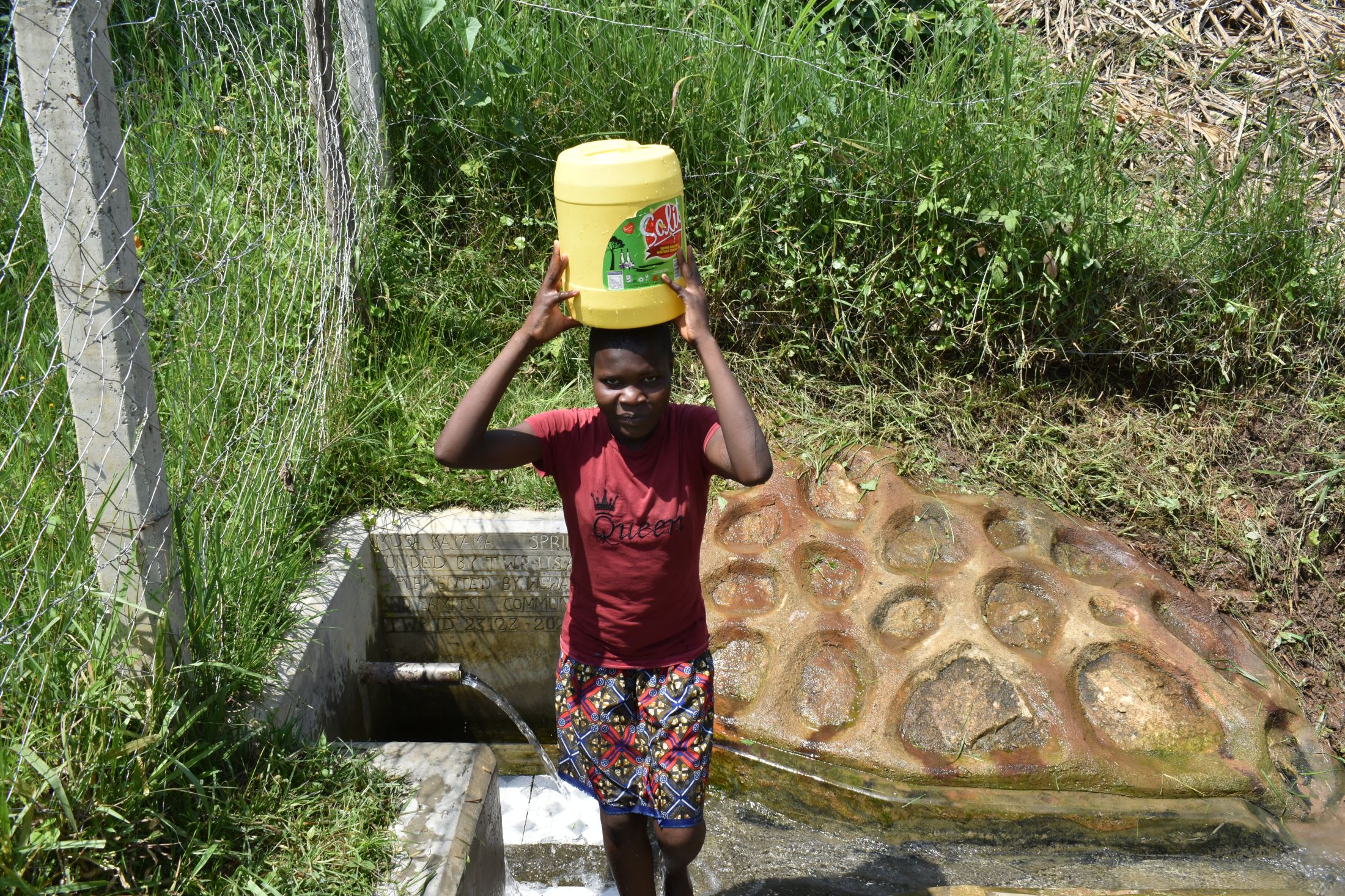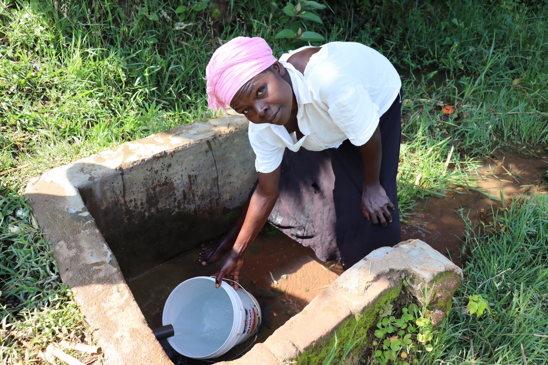 "The water looks clean for human consumption, but the environment around the water point is wanting. Therefore, I can only drink water from this particular spring when it's treated," said field officer Betty Muhongo.
