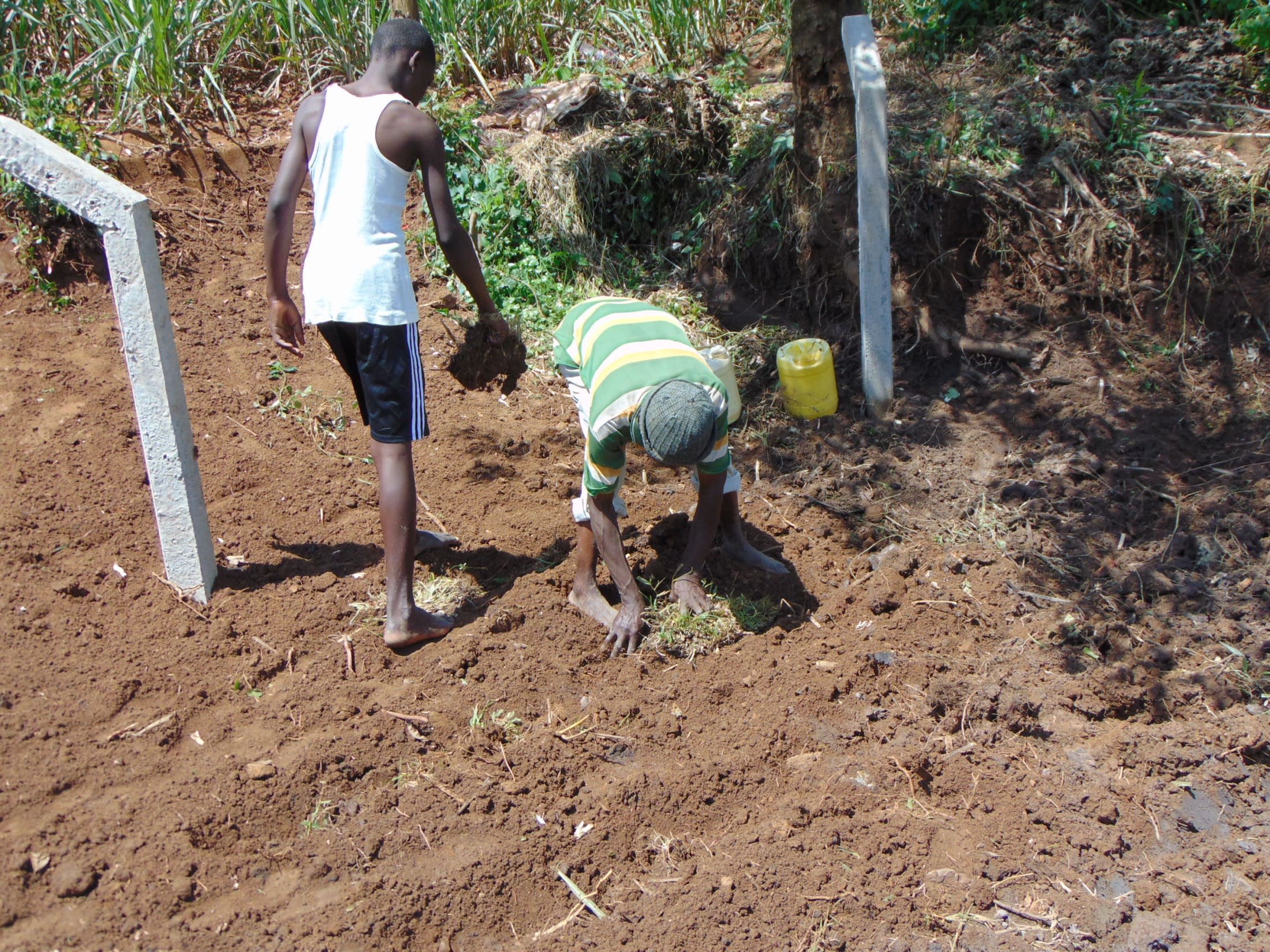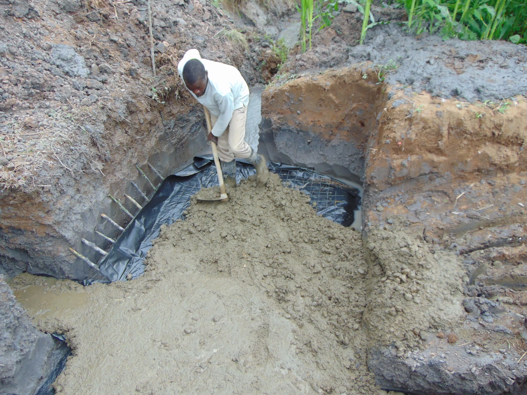 The community also came together in an attempt to protect their primary water source, Musa Kataka Spring. Everyone contributed a few bags of cement, built a small retaining wall, and installed a pipe to collect the flow of water, doing their best.