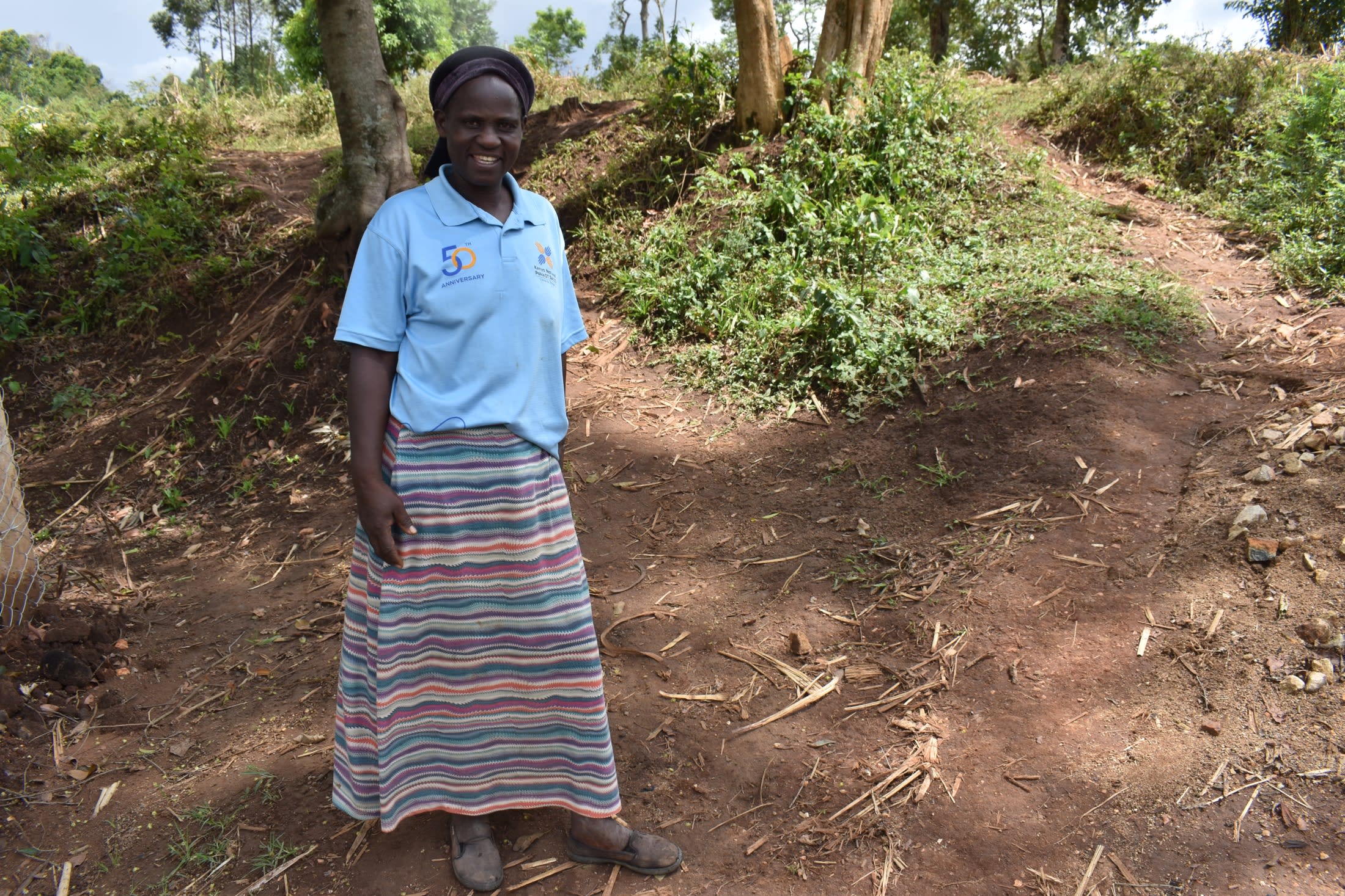 "Having water is a blessing to any human, but to us, it is like a punishment because it has not been a week since I got sick. I had sharp stomach pains and diarrhea. I visited [the] Mayuge dispensary, and I was diagnosed [with] typhoid and the doctor said that it is caused by drinking dirty water from the spring. Treating typhoid is very expensive, and this has affected one family member to the other. I believe protecting this water point will keep us healthy," said 55-year-old farmer Mrs. Difina Mwangala, shown below.