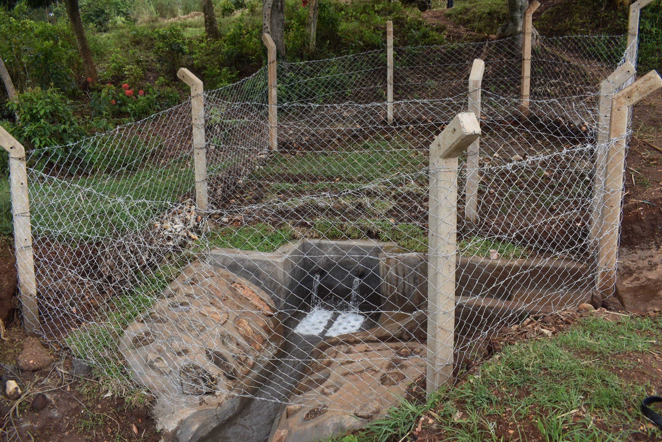 "According to the community members, the spring structure shakes when a person walks near the spring box. Shaking means the wall is becoming weak, so they fear for their safety. This has forced them to protect the spring box area using thorns so that children do not play around the spring," said our field officer Olivia.