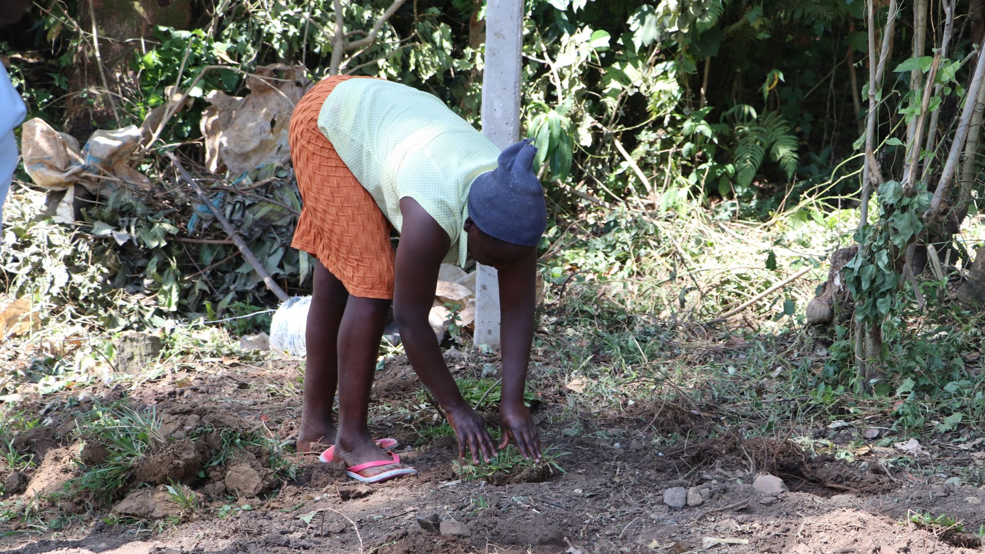 We asked Irene about her concerns regarding the spring. She said, "I want to feel safe when I send my children to fetch water and also when I use the water from our source. The area at the back of [the] spring is bushy, and it hardly gets slashed. There is also a huge challenge of stormwater from the road passing near the spring."