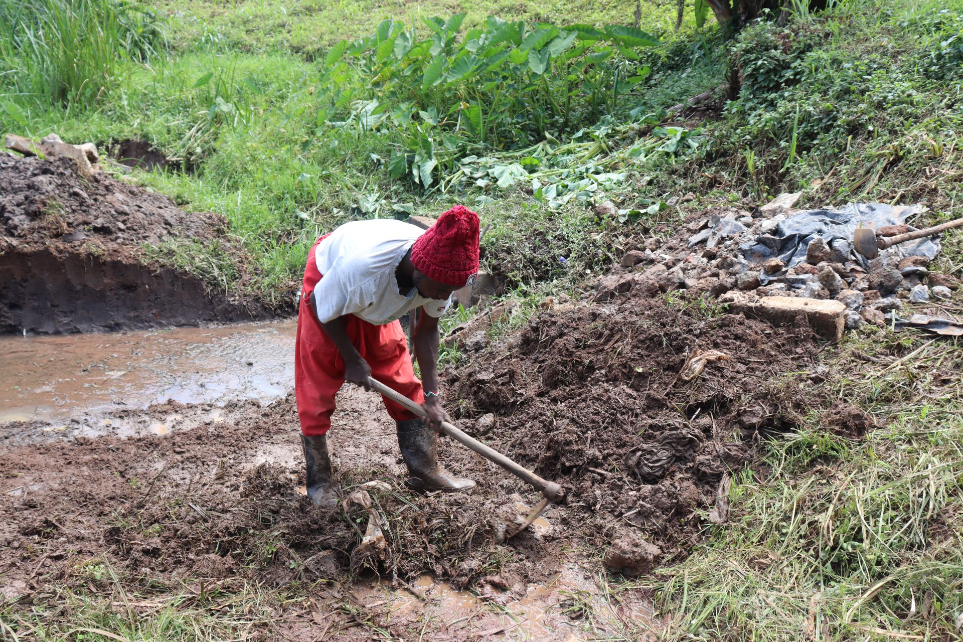 He shared, "Long queues at the waterpoint lead to long wait times, which is frustrating to my peers and me, who are students. Our waterpoint has three [discharge] pipes, yet the cumulative discharge is just enough for one pipe! This problem should be resolved in order to reduce time spent [in] the spring."