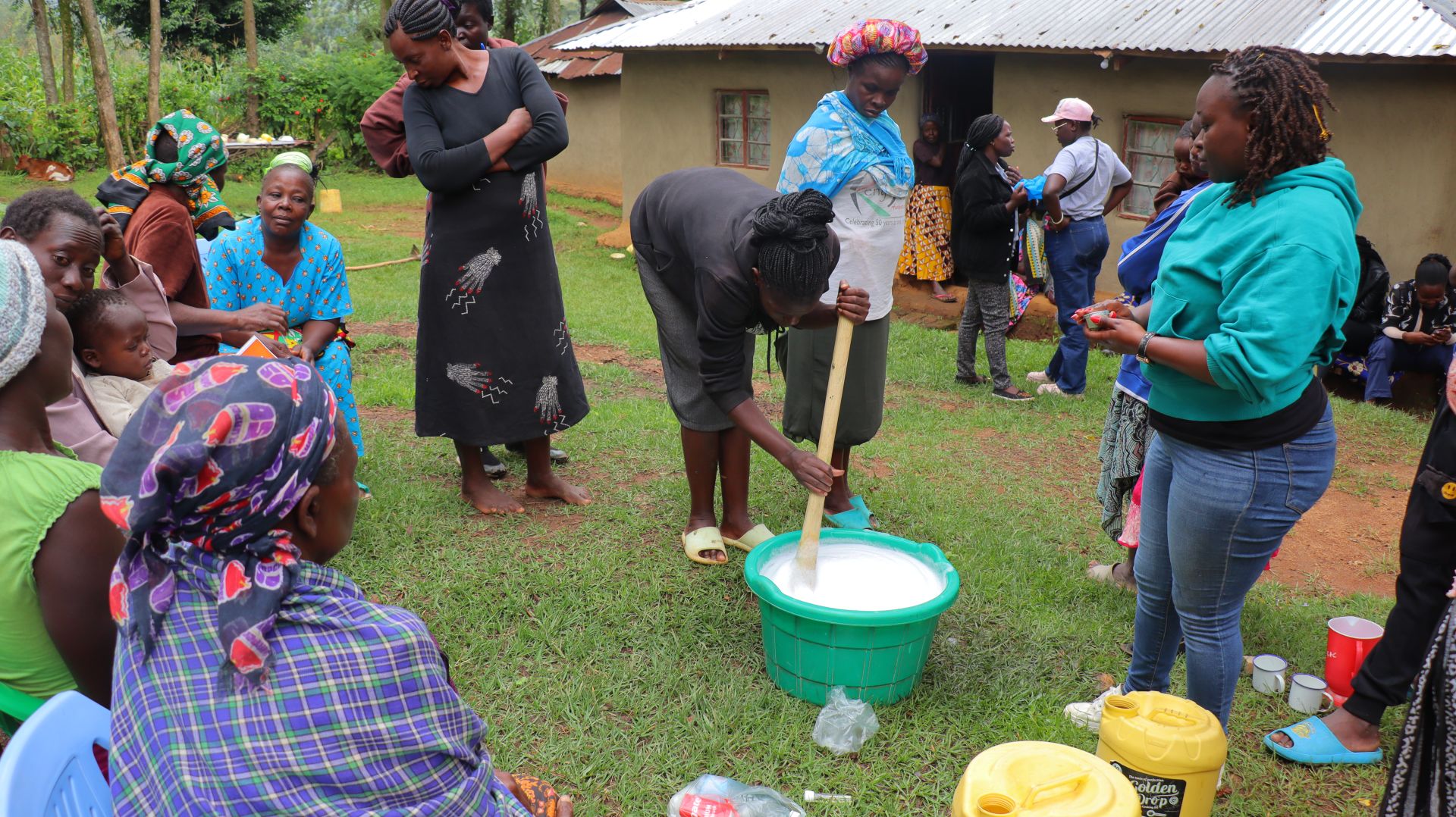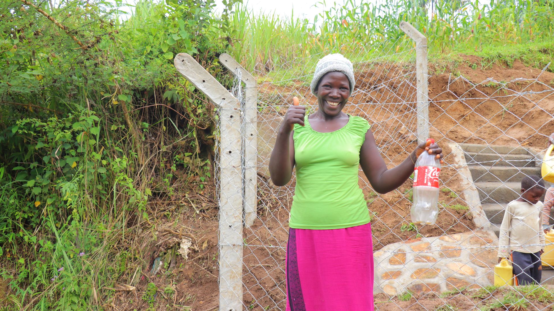 As an extra measure towards water quality safety, uniquely engineered chlorine dispensers are installed at all of our spring protection projects so community members can treat their water with pre-measured doses of chlorine. The chlorine treats any residual contamination and stays active for two to three days, ensuring water stays safe to use even when stored at home. Chlorine delivery and maintenance of the dispensers are part of our ongoing community support.