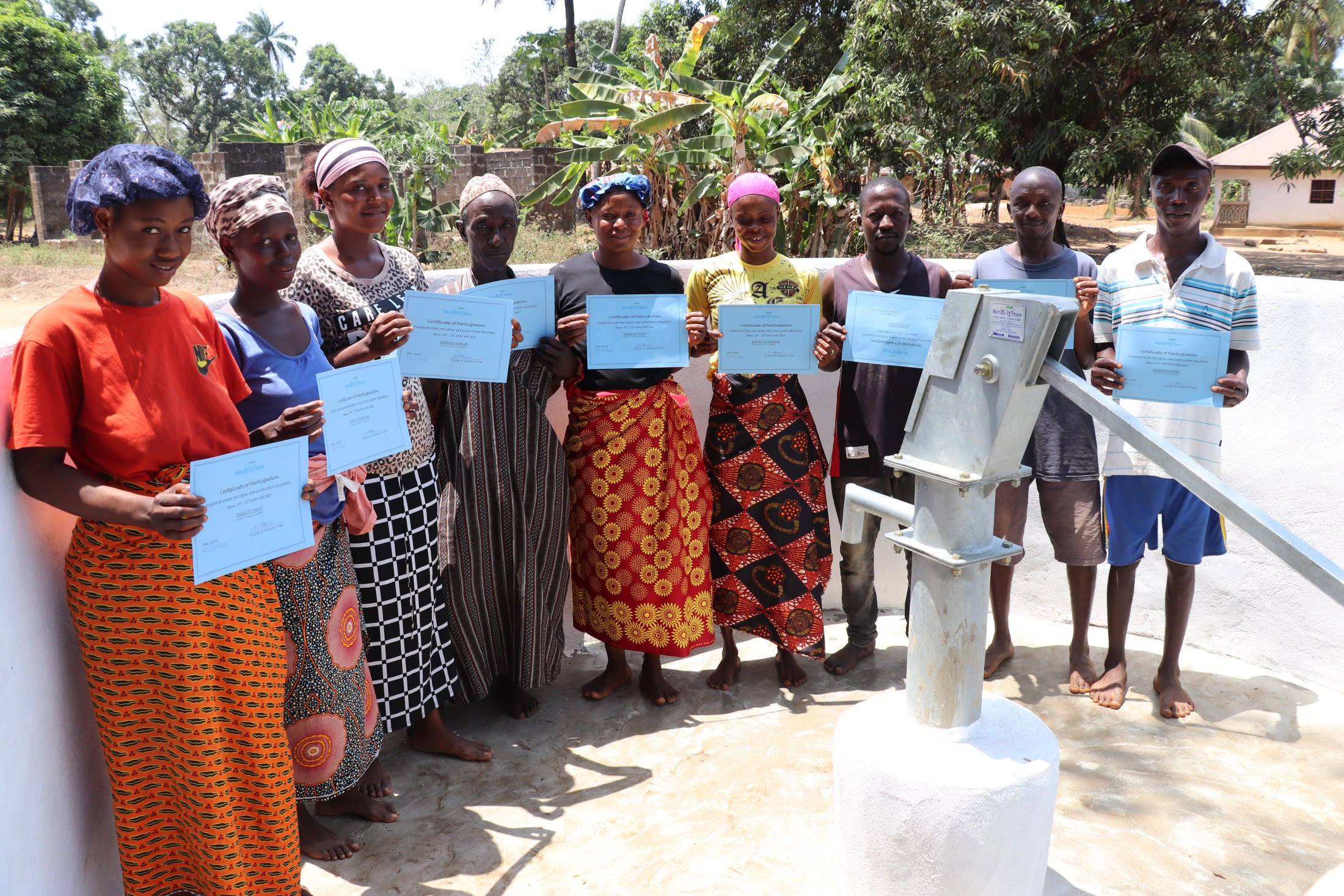 "The community people were singing and dancing, praising God for the water well they now have in their community. Men, women, and children were happily splashing water. The town chief, Pa Komrabai Sesay, and the town head man, Mr. Nabie Bangura, also splashed water together, saying that they are happy in their tenure of office [that] they had the opportunity to be part of the celebration of handing over of this water well in their community," said field officer Sia Veronica Kai.