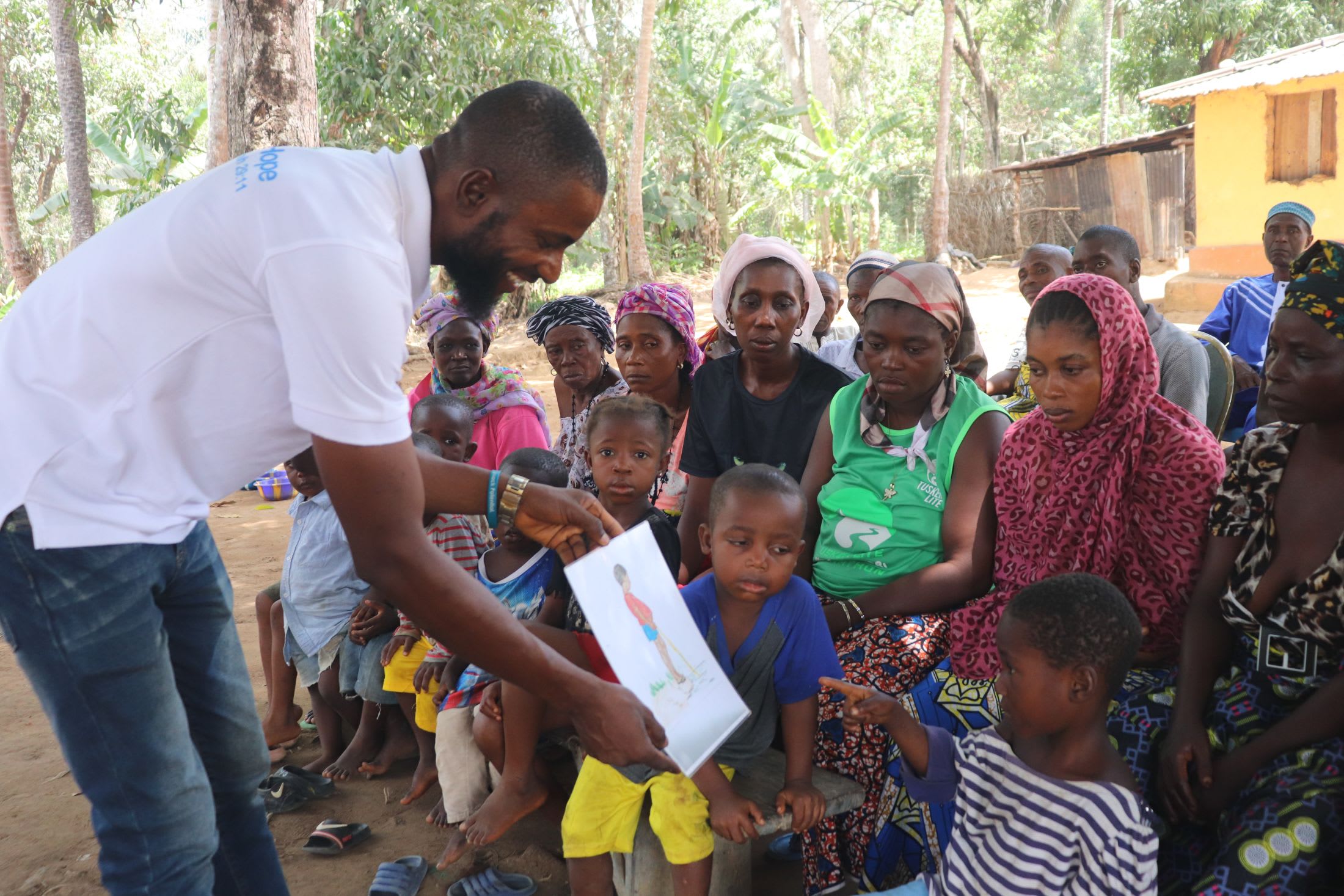With the community's input, we've identified topics where training will increase positive health outcomes at personal, household, and community levels. We'll coordinate with them to find the best training date. Some examples of what we train communities on are: