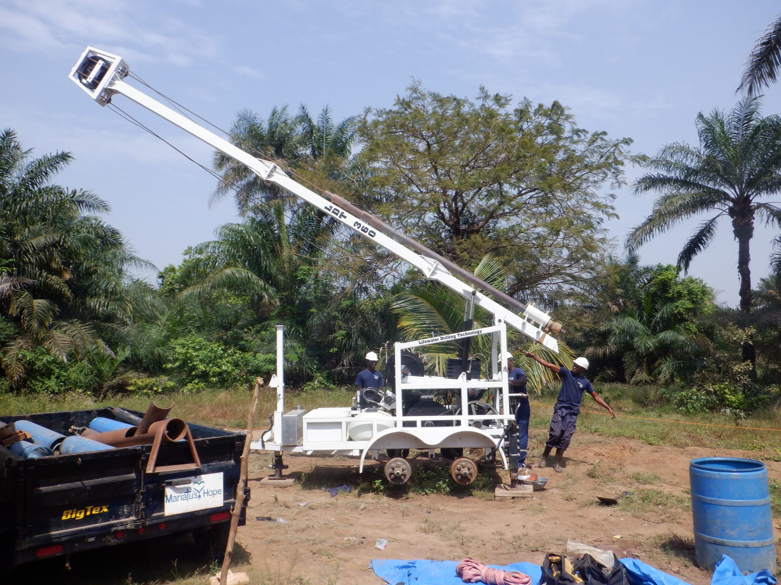 Abundant water is often right under our feet! Beneath the Earth’s surface, rivers called aquifers flow through layers of sediment and rock, providing a constant supply of safe water. For borehole wells, we drill deep into the earth, allowing us to access this water which is naturally filtered and protected from sources of contamination at the surface level. First, we decide where to drill by surveying the area and determining where aquifers are likely to sit. To reach the underground water, our drill rigs plunge through meters (sometimes even hundreds of meters!) of soil, silt, rock, and more. Once the drill finds water, we build a well platform and attach a hand pump. If all goes as planned, the community is left with a safe, closed water source providing around five gallons of water per minute! Learn more here!