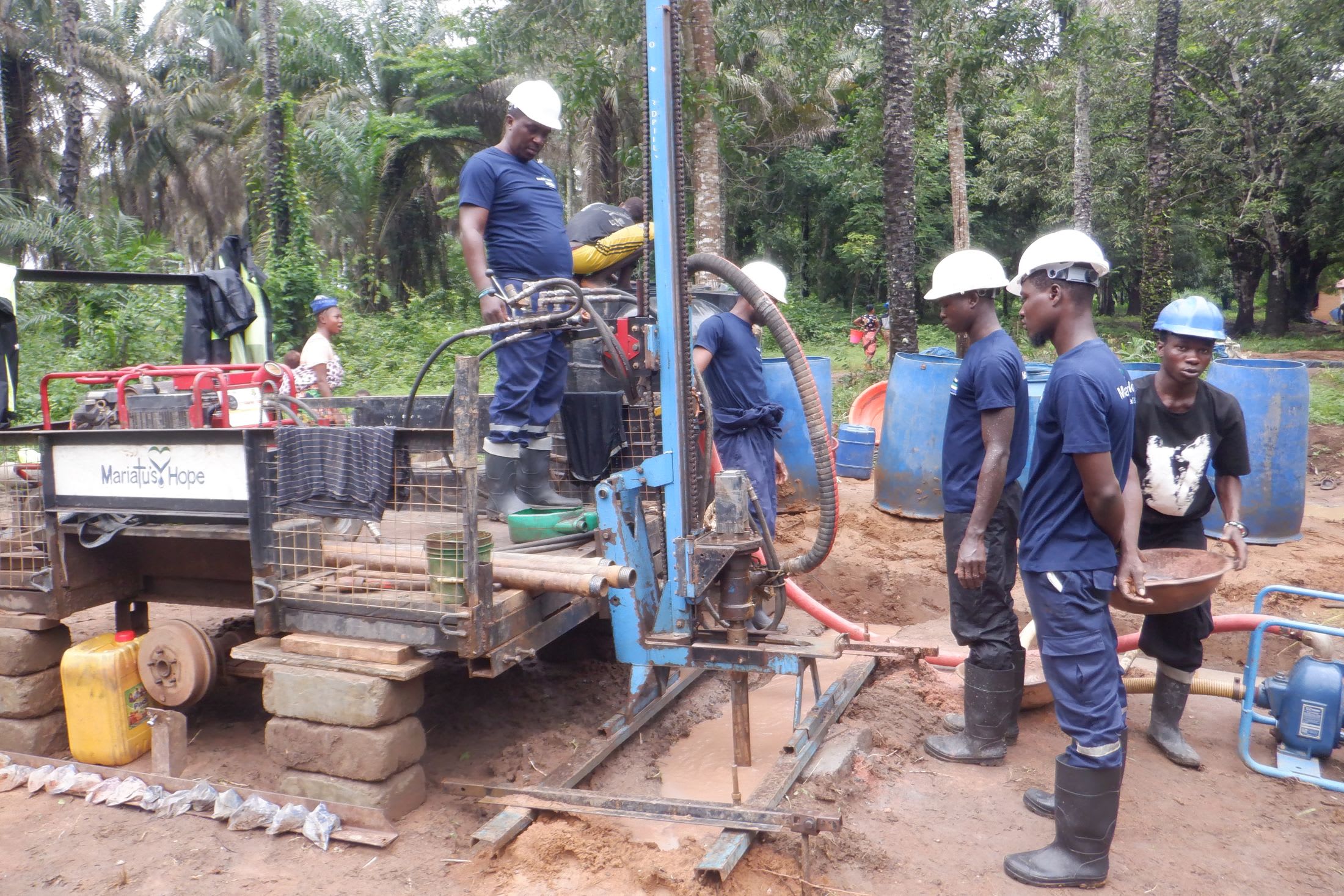 Most of Madonkeh's 70 people farm or produce palm oil to earn a living. However, both of these activities require water, which is in very short supply. People can never make enough palm oil or produce enough crops to feed their families properly.