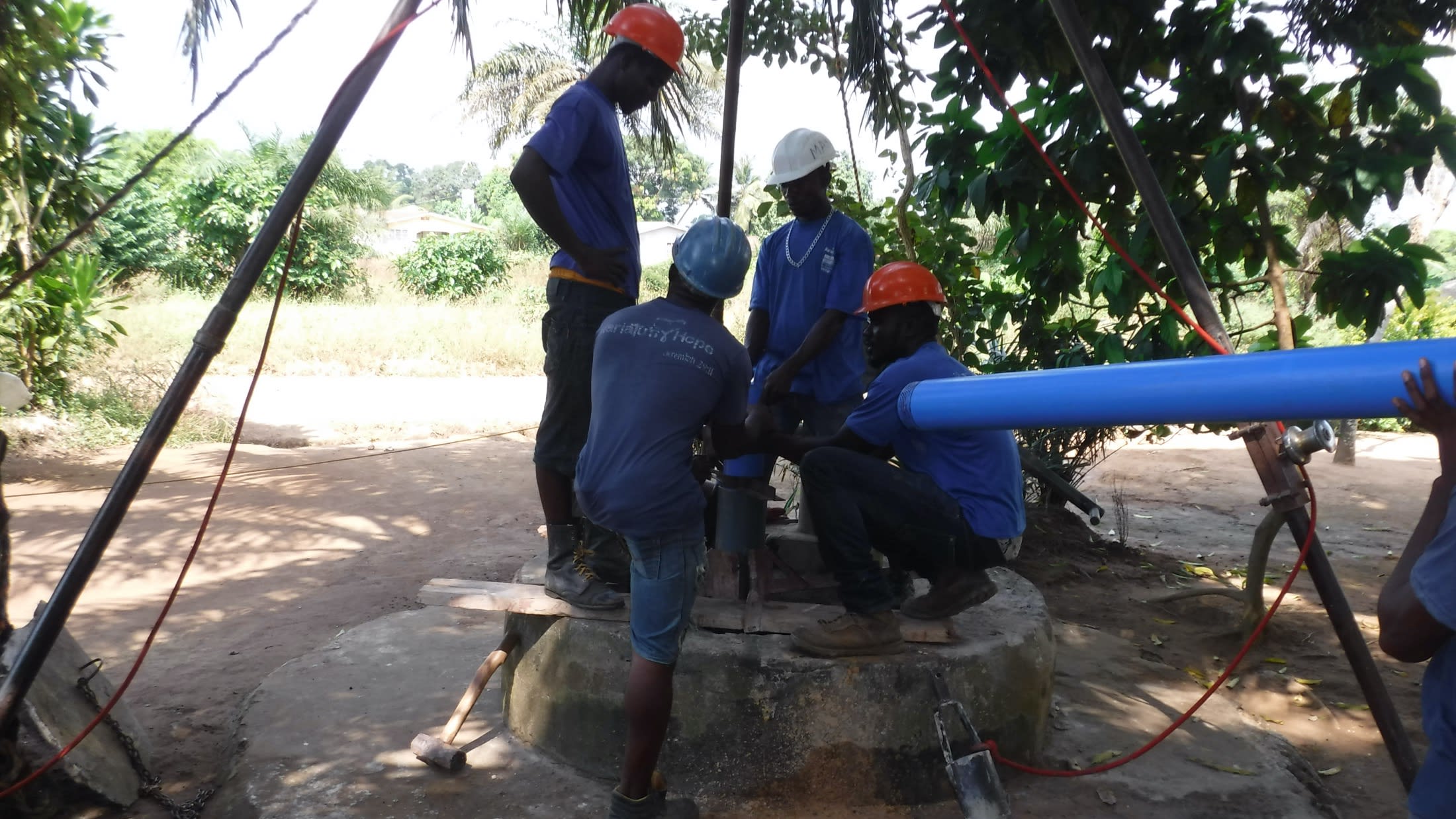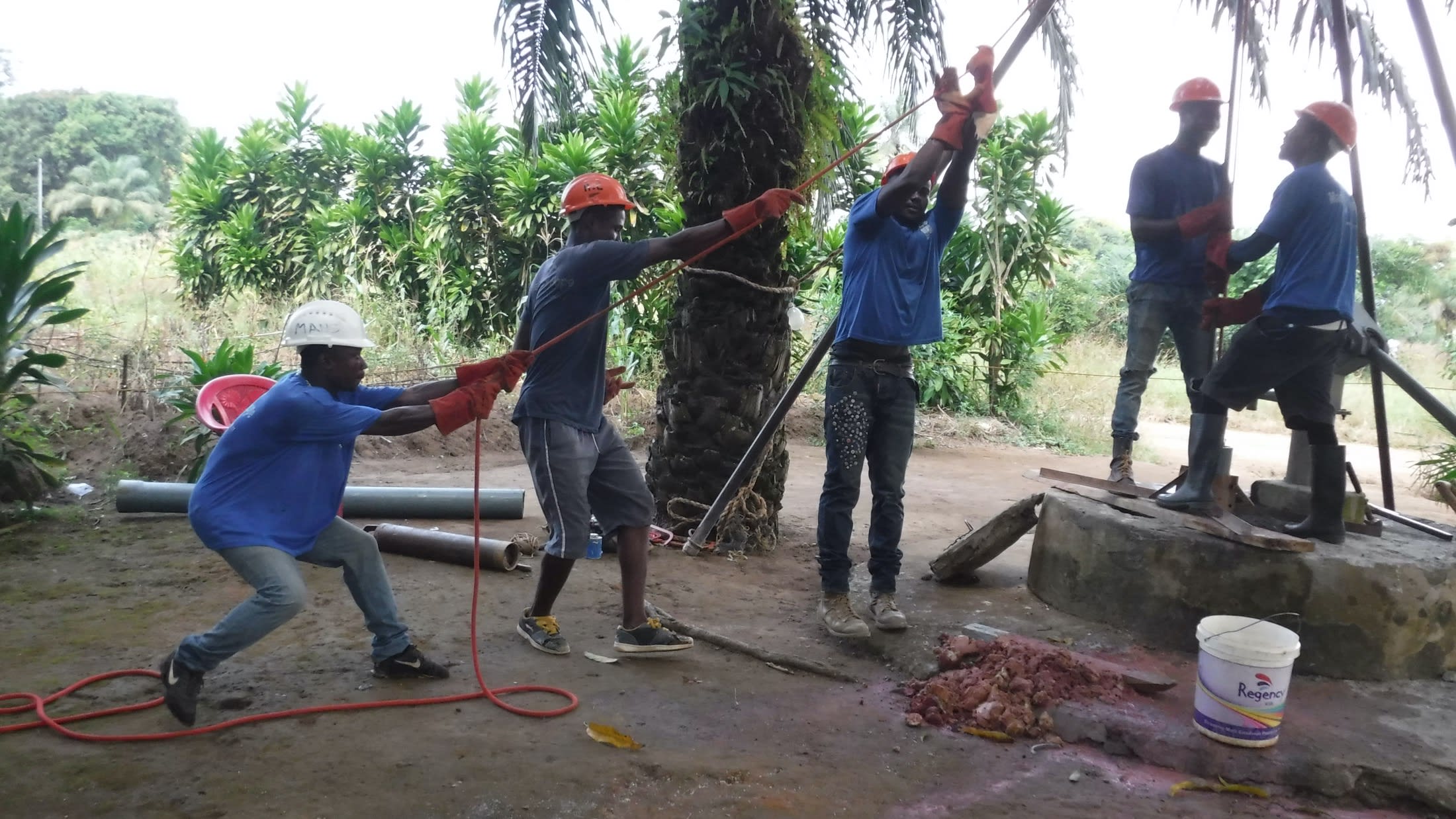 As the team drills, casing will be installed, transforming the bottom of this hand-dug well into a borehole. PVC piping will connect this lower system directly to the pump, a combination that we know will also improve the quality of water.