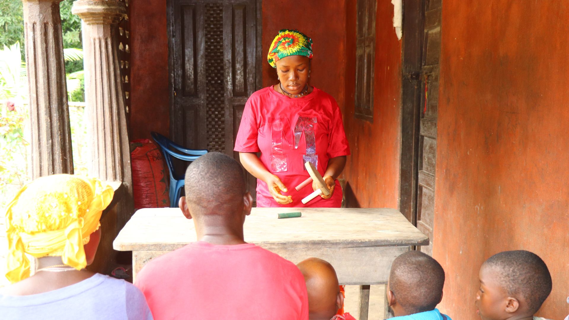 We also invited a nurse from the local clinic to help explain some topics and spread awareness about Sierra Leone's free vaccinations for children under five. Nurse Isatu Mansaray was instrumental in reinforcing each lesson.
