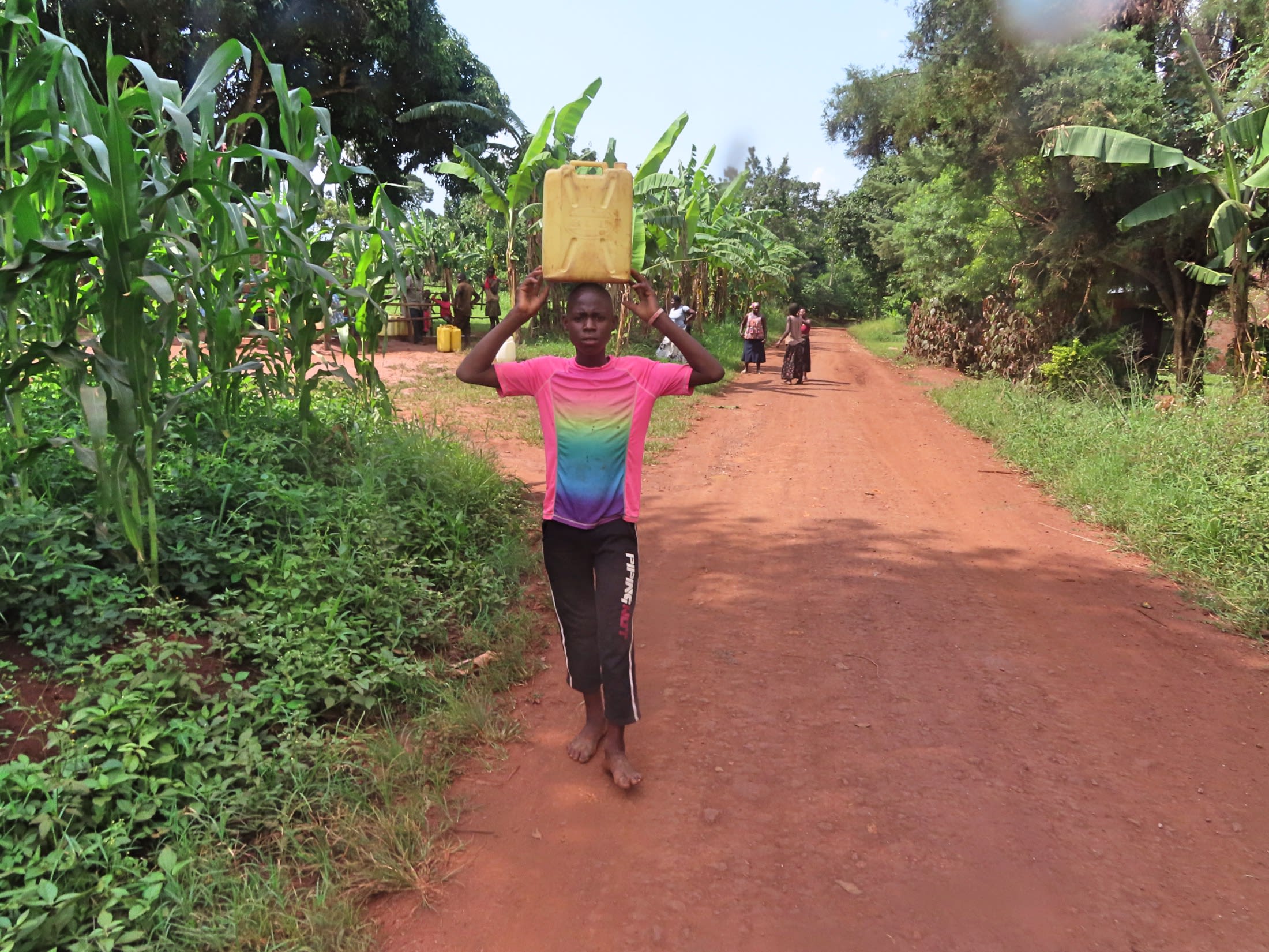 Children often bear the responsibility of collecting water for their families, which they find very challenging. It is not uncommon for them to be late for school or miss classes altogether because it is a long, exhausting, difficult task.