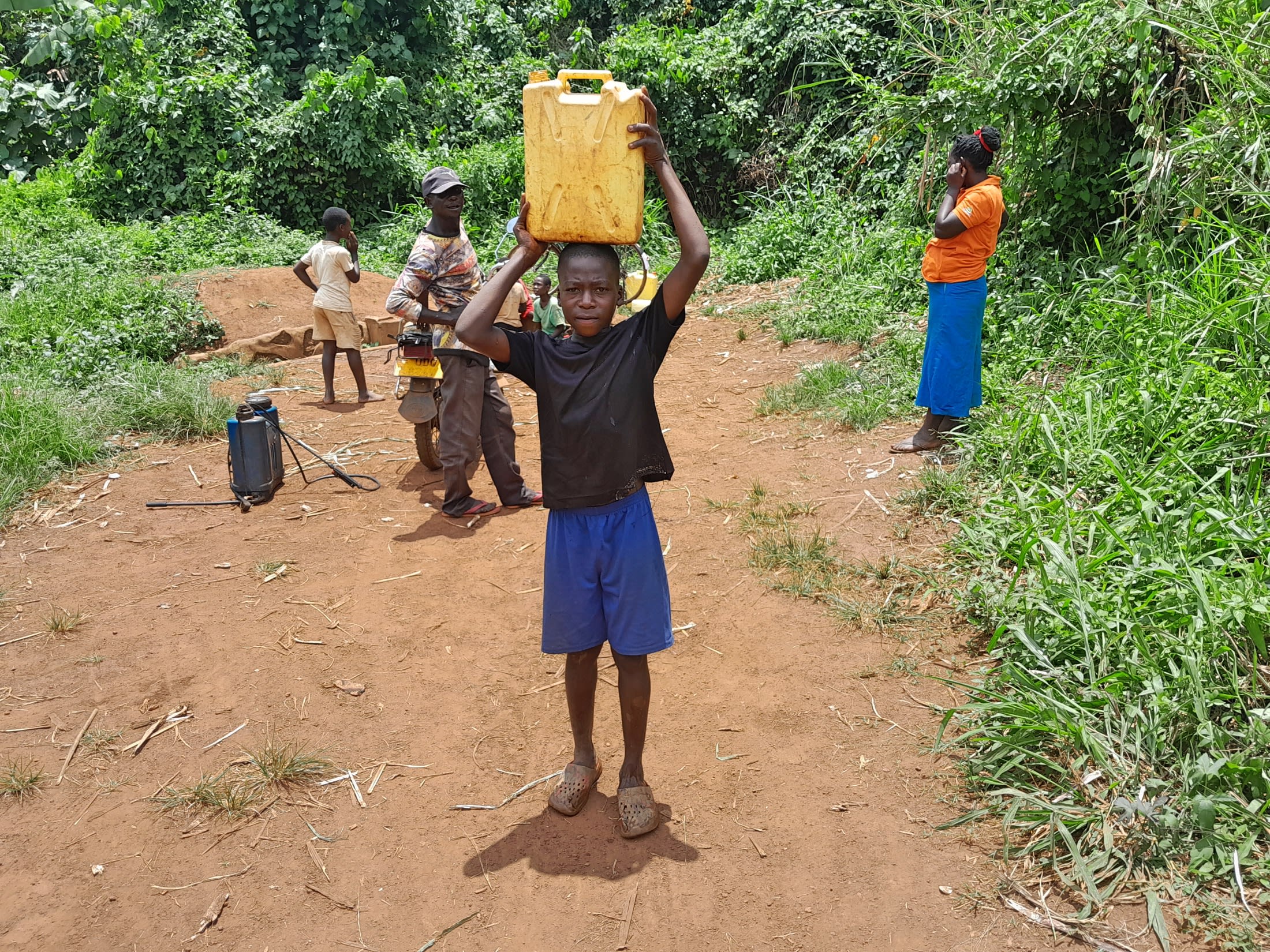 The 1,000 people of the Katugo Community face unfathomable challenges to access sufficient water. Their overcrowded water sources are distant and require crossing a perilous road to get there, making parents fear sending their children to collect water.