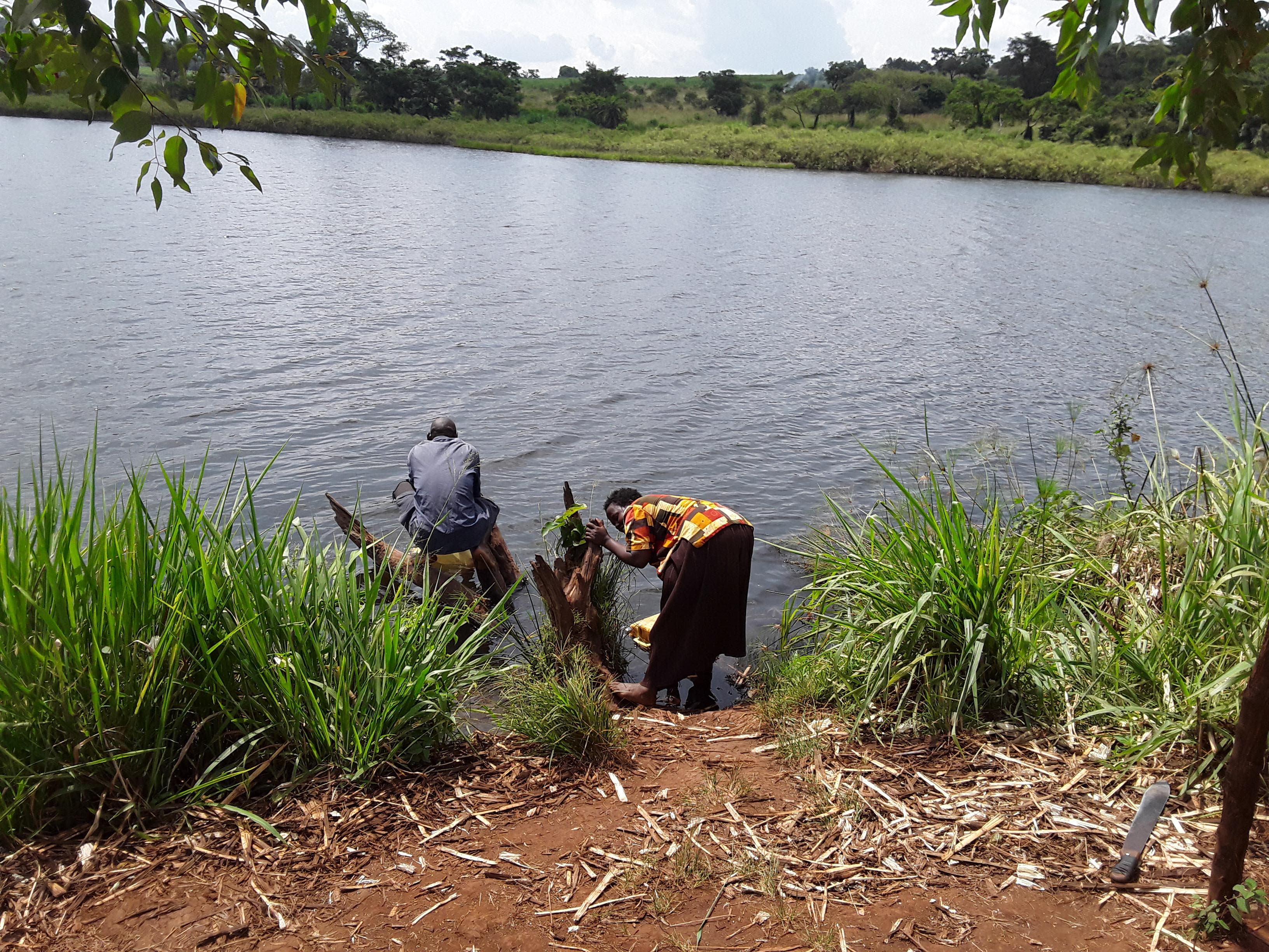 The main source of water here is a huge river. Community members step through the reeds and wade into the water to fill their containers. It's impossible to know how many sources of contamination there really are since the surface water stretches through an extensive area. Animals come and go, children swim, and rainwater washes contaminants down the riverbanks into the water.